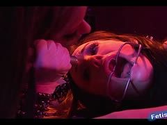Dicke Milf von zwei Frauen festgehalten und an der Fotze gefoltert